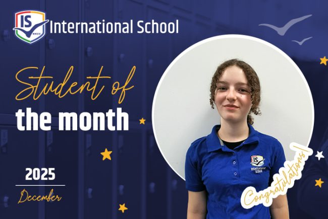 International School is proud to announce that our Student of the Month for December is Sara Ružica Vulin-Daniel, a dedicated and curious Year 10 student who continues to leave a strong impression on her peers and teachers with her enthusiasm, discipline, and perseverance. Sara is an exceptionally diligent, talented, and curious student with outstanding manners,…